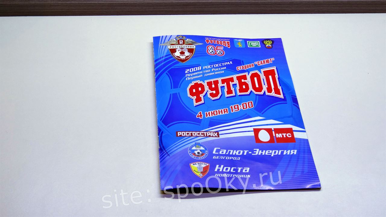 Год 2008. Если вы сравните две программки за 2007 и 2008, то разница будет видна сразу - только цвет. С желто-зеленного на синий, как это было в 2002. Все остальное осталось так же. Глянец, фотографии, только лишь добавилась реклама спонсоров. Поэтому могу лишь вспомнить шикарный сейв Александра Беленова, когда он в прыжке кулаками вынес мяч, за что получил огромные овации от болельщиков и не удержавшись, поклонился. Программки: Салют-Энергия - Носта Новотроицк, Салют-Энергия - Балтика Калининград