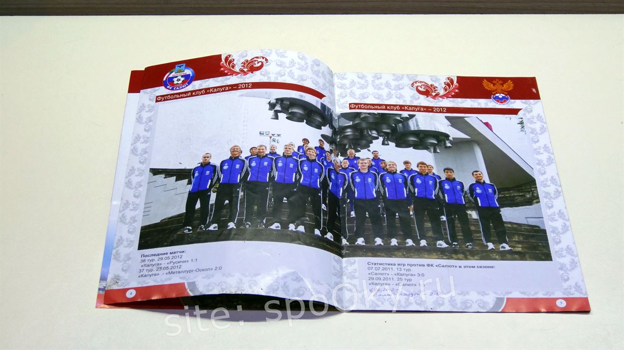 Год 2011-2012. Начиная с этого сезона Российский футбол перешел на систему Осень\Зима. Программки стали приятного светлого оформления, с красочным клипартом на обложке. Составы команд так же печатались, как и в 2010, но с одним отличием, на последней странице с уже привычной таблицей составов. Стали появляться интересные интервью и истории команды вне футбольного поля. Что касаемо кадрового состава. Полный переворот. После неудачного окончания сезона 2010, в команде произошли огромные перемены. Главным тренером стал Максим Васильев. Состав команды можно увидеть на фото. Программка: Салют - Калуга