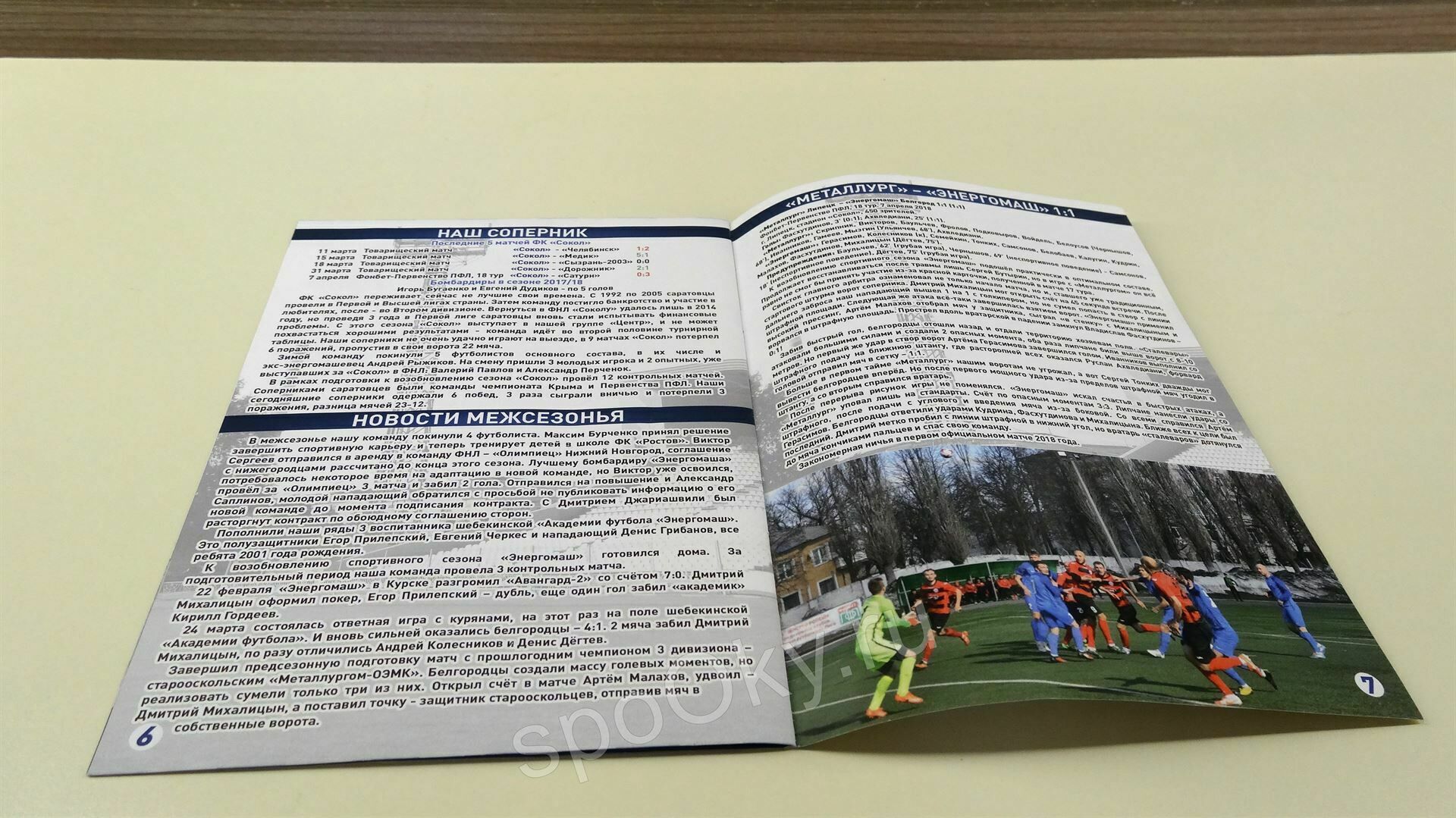 Сезон 2016-2017 лига ПФЛ (вместо 1,2,3 - станет ФНЛ, ПФЛ). Программки становятся в том же стиле, что и годом ранее, но только все страницы в приятном полуглянце или сатине, красочные. На обложке фотография футболистов. Здесь же будущие легенды белгородского футбола Денис Дегтев, Артем Семейкин (с автографом), брат Сергея Рыжикова - Андрей и Александр Агеев. Кстати, в данельнейшим еще ни раз будут продаваться программки, где несколько штук будут подписаны футболистами и в случайном порядке продаваться на кассах стадиона. По факту очень крутая идея и акция. Также на страницах фоновая диагональная полоса, как на игровой форме. Программки: Энергомаш - Динамо Брянск, Энергомаш - Зенит Пенза, Энергомаш - Чертаново, Энергомаш - Металлург Липецк.
