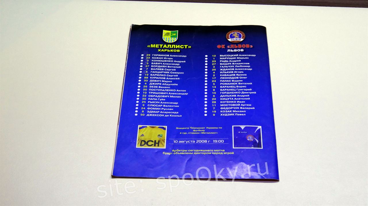И еще одна программка чемпионата Украины: Металлист г. Харьков - Львов 2008 год