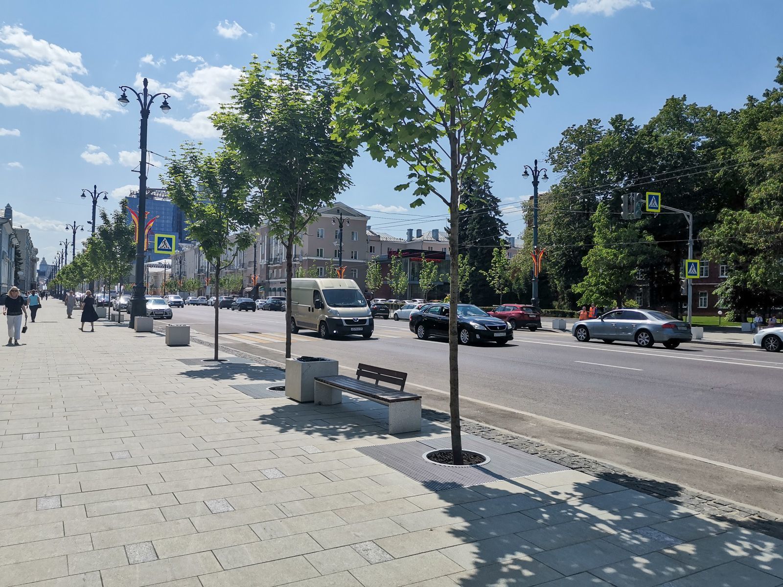 Очень понравилось, что в Воронеже большое количество зелени — на улицах города множество деревьев и кустарников, которые создают комфортную и уютную атмосферу. Практически на всех улицах, где я гулял, установлено много удобных скамеек, где можно отдохнуть, это тоже большой плюс. Даже на оживленных больших улицах. В Воронеже также очень много кафе и кофеен. Еще в центре очень много исторических зданий с различной архитектурой. А, да, в целом, благоустройство Воронежа постоянно улучшается, делая город еще более комфортным и привлекательным для жителей и туристов. Это правда, тот же проспект Революции стал современным и комфортным, с широкой плиткой, съездами для пешеходов и отмосткой из брусчатки и высаженными молодыми, не веточками, а деревьями. Нехватает правда велодорожек, как для велосипедистов, так и для самокатчиков. Воронеж активно работает над улучшением благоустройства и это заметно. Даже общественный транспорт улучшился комфортными большими автобусами, а новые остановки достаточно длинные и на них установлены современные табло информирования маршрутов. Причем это даже не просто табло с яркими красными светодиодами, а полноценный монитор, за что просто большой плюс и респект. Я увидел, реконструкцию пешеходных зон и установку новых светильников. Все это делает город еще более привлекательным и уютным. Я наслаждался архитектурой зданий, которые были сочетанием классического и современного стилей. Кстати, мне очень нравится, когда при реконструкции и ремонте здания, не бездумно облепливают плиткой, а подчеркивают геометрию фасада и элементов. В центре очень много красивых зданий. Как и много уютных не широких улочек с оригинальными витринами и магазинчиками.