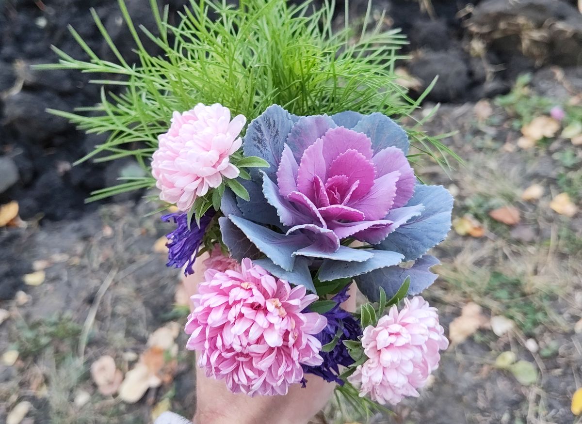 Цветы. Постоянные многолетники - розы, ландыши, пионы, тюльпаны, нарциссы, люпины (дельфиниумы), бульдонеж (декоративная калина) иногда добавляю самыми разнообразными цветами, какими увижу в продаже. Например, в 2023 выращивал декоративные подсолнухи. Шикарно смотрятся. Или декоративная капуста.